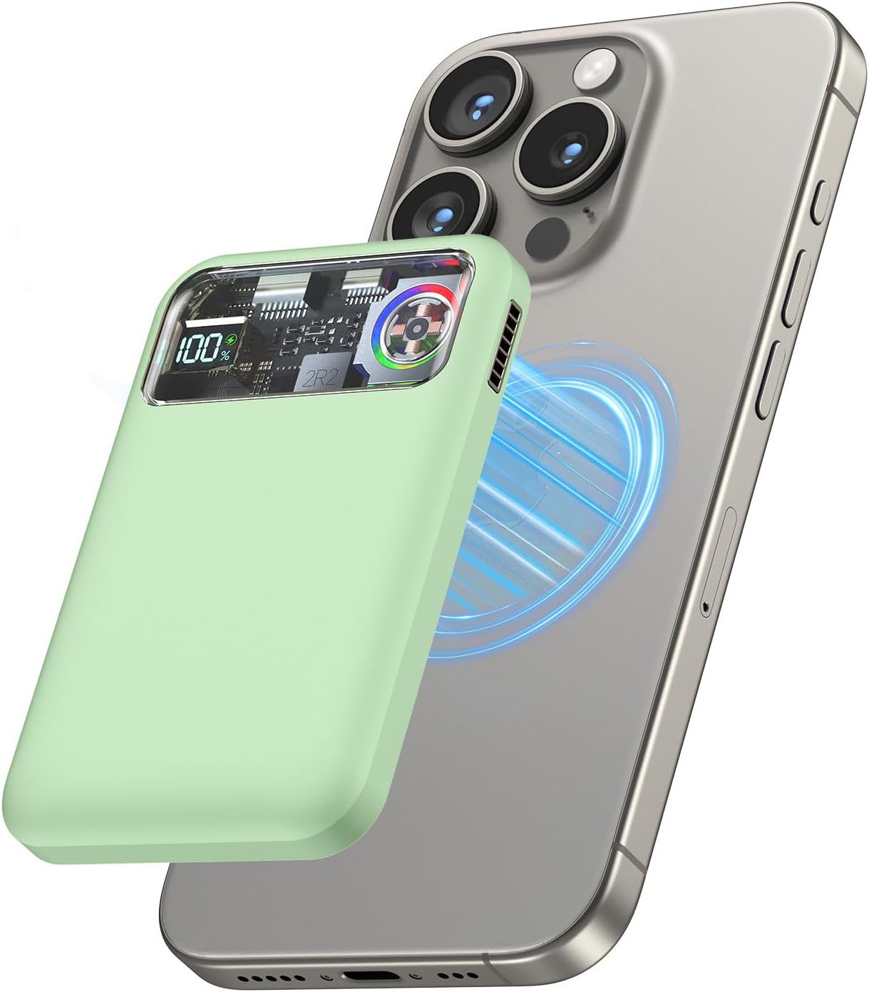 Magnetic Power Bank,11000mAh Battery Pack with Active Cooling for MagSafe,Transparent Portable Charger with 20W USB-C Input/Output for iPhone14/13/12 Pro/Pro Max/Mini
