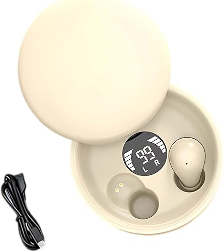 Bluetooth Headset, 2025 New Wireless Earbuds, Lightweight Mini Earbuds for Sleeping, Comfortable in Ear Headphones for Side Sleepers, Headset for Night Use Suitable for Adults (Beige)