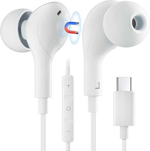 USB C Headphones for iPhone 17, Type C Earphones Built-in Microphone and Volume Control, Hi-Fi Stereo Earbuds, Wired in Ear USB C Head Phones for iPhone Air/17 Pro Max/16/15/for iPad Pro/Samsung S25