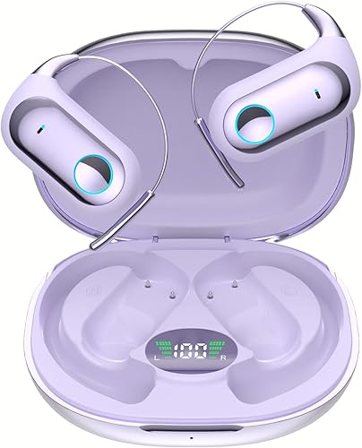 Open Ear Earbuds Wireless Bluetooth 6.0 Headphones, Noise Canceling Ear Buds with Earhooks, True Wireless Blue Tooth Earphones for Work, Sports, Running, Gym, Workout Purple