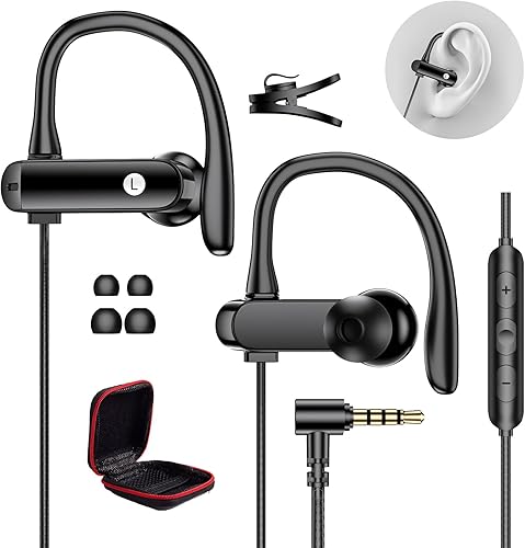 APETOO 3.5mm Wired Earbuds Sport in-Ear Headphones with Earhook, Mic & Volume Control, HiFi Stereo Noise Isolating Over-Ear Ear Buds Plug-in Earphone for iPhone/Samsung/Switch/PC/Kid/School/Airplane