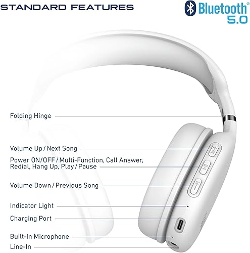 Wireless Bluetooth Headphones, Over-Ear, Foldable, with Built-in Microphone