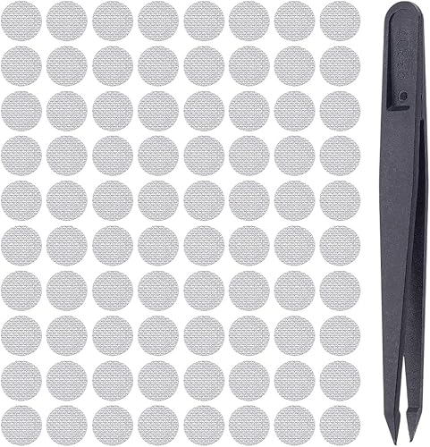 OLYCRAFT 80Pcs 4mm Earbuds Filters Earphone Filter Mesh Silver Earphone Protective Filters Nylon Screen Earbud Filters with 1Pc Anti-Static Beading Tweezer for in-Ear Headphone Mesh Replacement