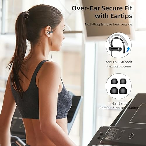 Open Ear Earbuds with Earhooks Bluetooth 6.0 Wireless, 36Hr Playtime for Running & Travel, Earphones with Memory Ear Hooks, Comfortable Touch Control Headphones (Black)
