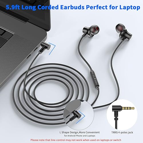 3.5mm Wired Earbuds with Microphone,1.8M Noise Cancelling Headphones Wired for Samsung Chromebook Laptops PC,Plug in Ear Buds Stereo Corded Earphones for iPhone iPad Galaxy A14 A15 A25 Switch School