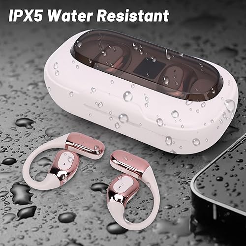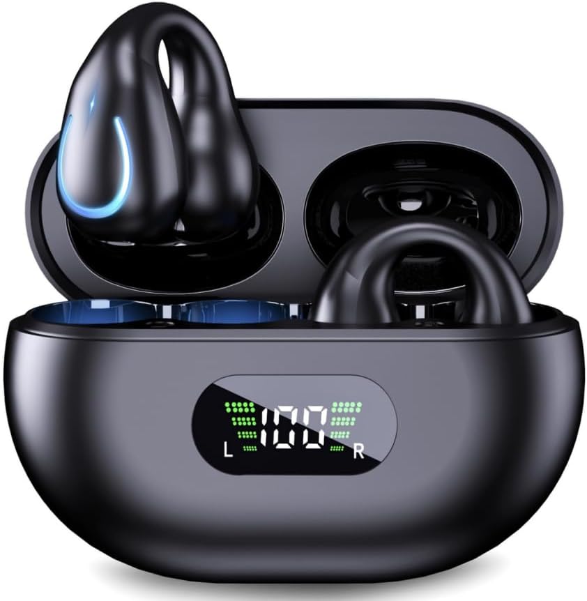 Open Ear Bone Conduction Headphones Bluetooth 5.3 Wireless Clip On Earbuds with Digital Display Charging Case 60 Hours Playtime IPX4 Waterproof Sports Earphones for Running