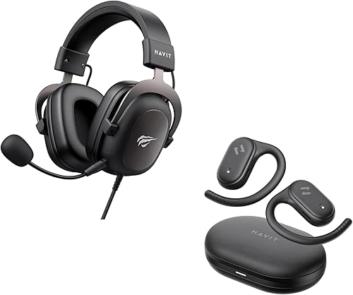 havit H2002d Gaming Headsets for PS4 OWS915 Open Ear Headphones, Over Ear Earbuds Bluetooth 5.4 Headphones for Running, Cycling Workouts, Black