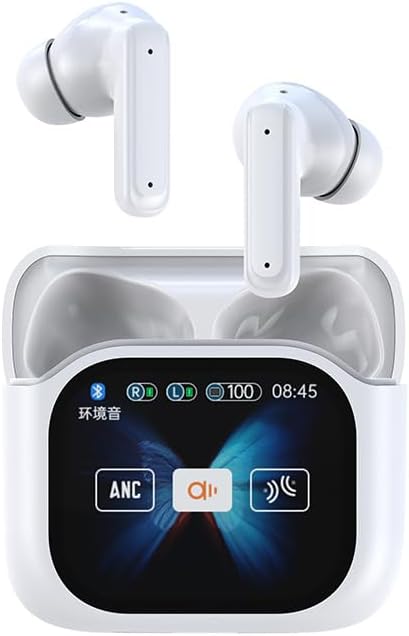 AI Translator Earbuds with Smart Display, 140 Two-Way Language Translator Earphones, 6H Playtime, 48H Battery Touchscreen Noise Cancelling in-Ear Earphones (White)