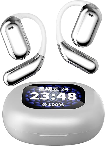 Shiftaken Open Ear Earbuds, 2026 New True Powerful Bluetooth 5.4 Open Ear Earbuds, IPX5 Waterproof, LCD Color Screen Bluetooth Headset with Mic, Non Ear Headphones Wireless Bluetooth (2pcs-A)