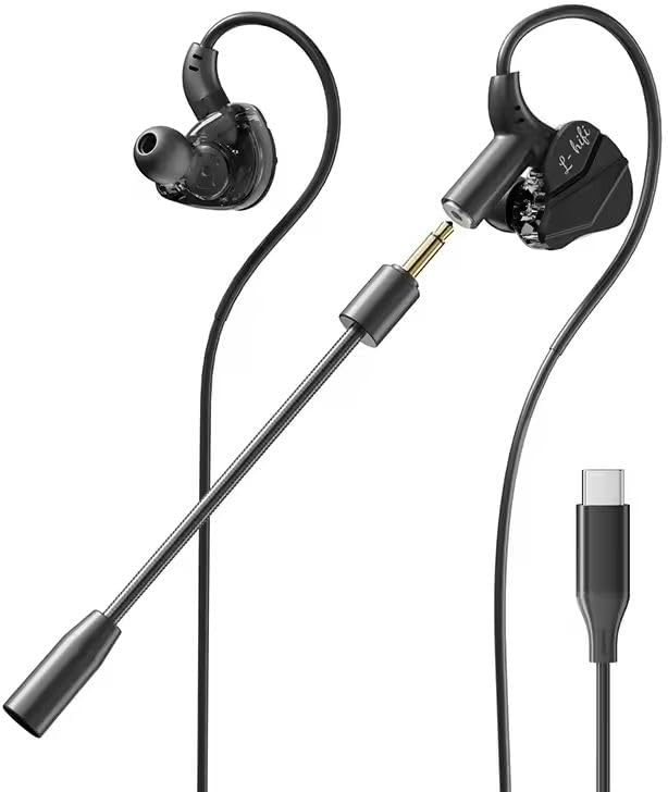 LP Gaming Headphones with Dual Mic Type C&3.5mm in-Ear Earphone HiFi Stereo Waterproof Low-Latency for Gamer Sports (Black G62 Dual 3.5mm)