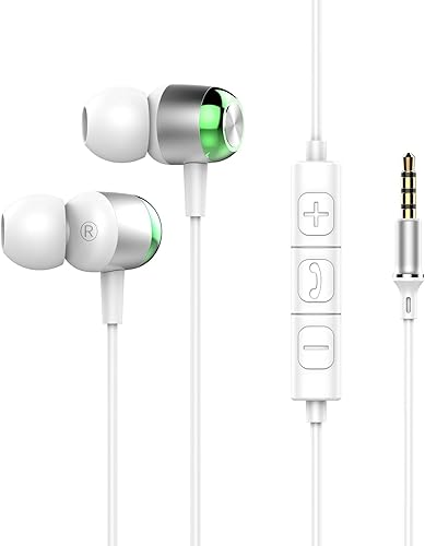 Type C/3.5mm Gaming Headphones in Ear Gamer Headphone Headset Volume Control with Bass Phone Earphones for Samsung Huawei Xiaomi (White)