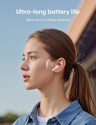 Wireless Earbuds Bluetooth Headphones 25H Playtime Waterproof Lightweight Ear Buds with Mic in Ear Earphones for Android/iOS, Christmas White Elephant Gifts Stocking Stuffers for Women Men, Pink