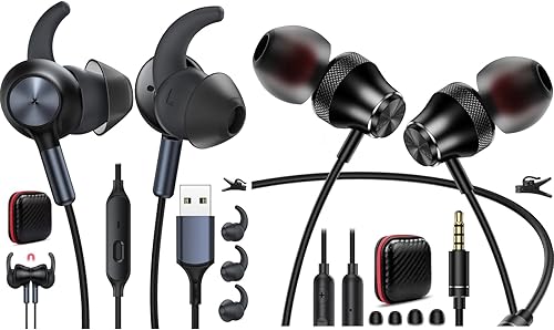 3.5mm Wired Earbuds USB Headphone Mute-able Mic Anti-Loose Wingtip 8.5FT Computer Headset in-Ear Noise Cancel Corded Earphone for MacBook Chormebook Notebook PC Laptop Desktop Office School Supplies