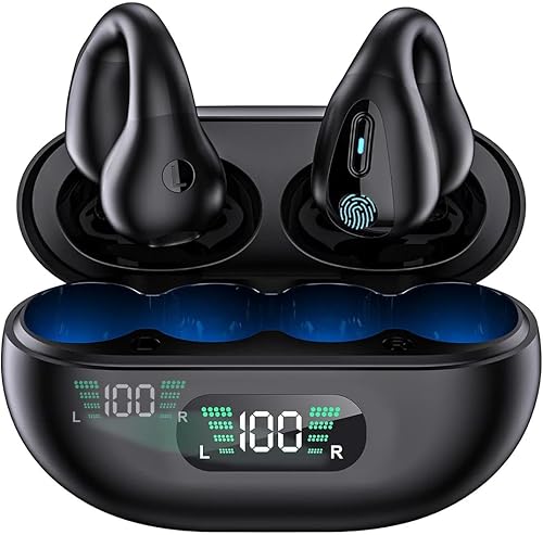 Fashionable Clip-On Wireless Headphones, Handbag-Style New X22 Ear Clip Headset with LED Display, Bluetooth Open Stereo Sound, Lightweight & Comfortable for Workouts Commuting Fit & 50h Playtime(A)