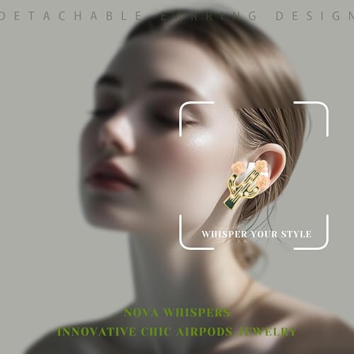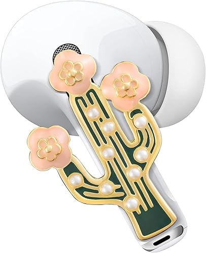 Earbud Jewelry - Fall Fashion Anti-Slip Earphone Earring, 14K Gold Cactus Non-Piercing Earflug Jewelry, Earpod Accessory Holder for Airpod 4, Pro 3, Pro 2 (1pcs for Both Right/Left Bud, Portable Box)