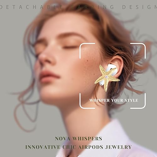 14K Gold Plated Starfish Earbud Earring for AirPods Pro 3/2, AirPods 4 [Anti-Slip Design to Grip Airpods & Portable Box] | Non-Piercing Lightweight for Festival & Fall Fashion (1pcs for Right & Left)