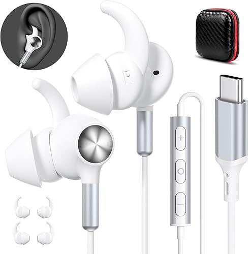 APETOO USB-C Wired Earbuds with Anti-Fall/Hurt Wingtips for iPhone 17-15 Pro Max/iPad - Mic & Volume Control, Pure Stereo Deep Bass, Sweatproof in-Ear Headphones for Running/Home/Office/Small Ear