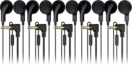 5 Pack Bulk Wired in-Ear Earphone Headphones with Microphone, Remote Controller, 3.5mm Connector and Sponge Covers, Black