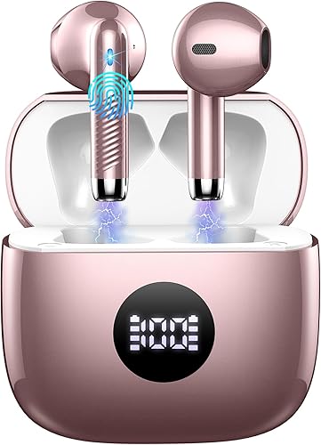 Wireless Bluetooth 5.4 Earbuds, Ear Buds LED Power Display Headphones 6D Stereo, Bluetooth Earbuds in-Ear Noise Cancelling Mic, 40H Playback Mini Case IP7 Waterproof Sports Earphones for Android iOS