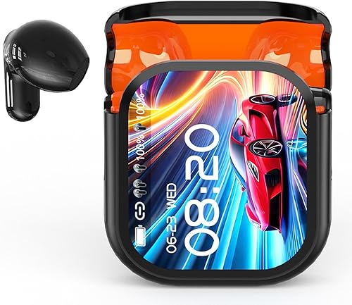 Yunseity Noise Cancelling Wireless Earbuds, HiFi Surround Sound 5.4 Earphones with LCD Full Color Touch Screen, Powerful Bass, 45H Playtime (Black)