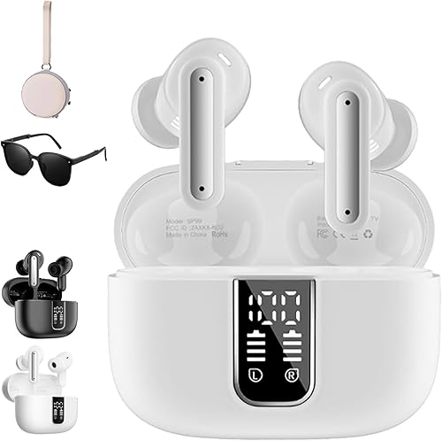 Vybz Earbuds, Vybz Pro True Wireless Earbuds with Noise Cancellation and Charging Case, Ip7 Waterproof in Ear Earphones, Bluetooth Earbud with Noise Cancelling Mic, LED Display (Black)
