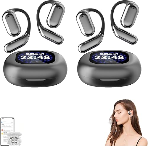 True Powerful Bluetooth 5.4 Open Ear Earbuds, Ipx5 Waterproof, with LED Display, 2025 New Open Ear Headphones, Multifunctional Wireless Opens Ears Bluetooths Earbuds (1pcB)