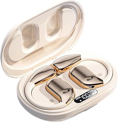 GOWENIC 2 in 1 Clip on Open Ear Headphones Wireless Earbuds, 0 Delay Bluetooth 5.3, 140H Play, IPX5 Water Proof HiFi, Hybrid Noise Reduction for Work Fitness Daily Use (White)
