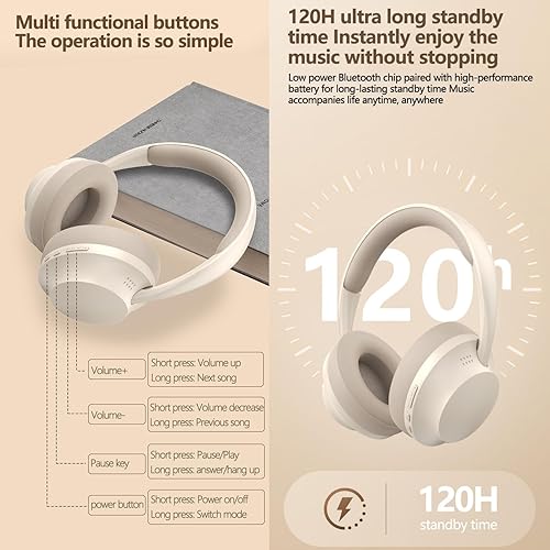 Bluetooth Wireless Headphones Over Ear-Bluetooth 5.3,Hands-Free Calls,HiFi Stereo Sound,Deep Bass,10-Meter Connection Range,Portable