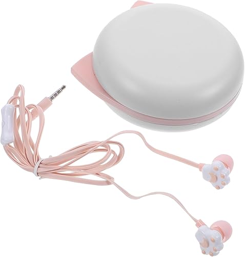 Cute Cartoon Kitten Claw Ear Headphones for Kids with Storage Box Pink Wired Earbuds for Girls Creative Design for School and Travel
