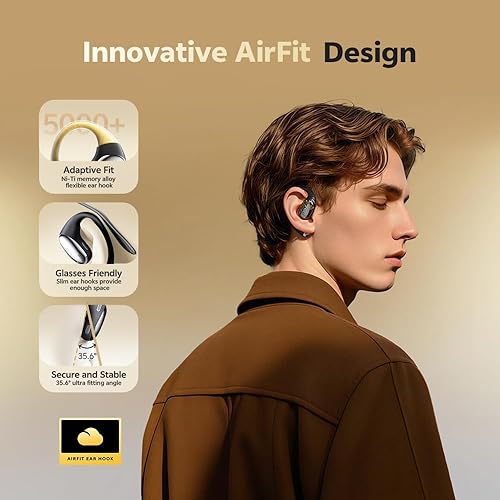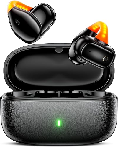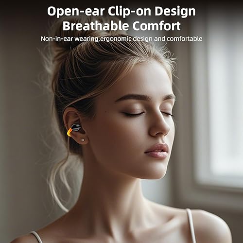 Open Ear Sport Earbuds, Clip on Bluetooth Headphones for Running Workout, Wireless Bone Conduction Earphones with Secure Fit Comfortable, Built-in Mic for Calls, Lightweight Headset for iPhone, Black