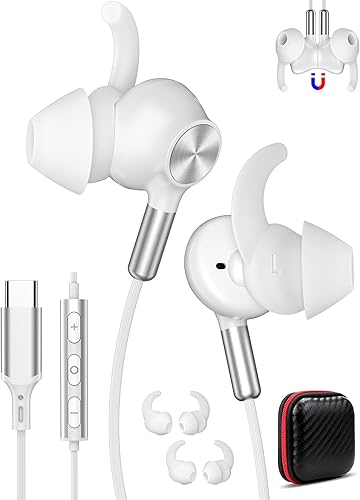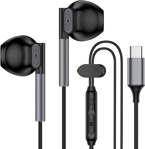 USB C Headphones, USB-C Magnetic Wired Earbuds HiFi Stereo Type C Earphones with Microphone Volume Control for iPhone 16 15 Pro Max Plus, iPad, Samsung Galaxy S25 S24 S23 Ultra, Pixel 9 8 7 and More
