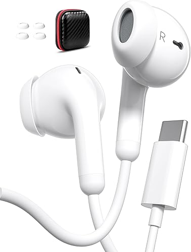 USB C Headphones for Samsung Galaxy A56 A54 A36 S25 Ultra S24 S23 S22 S21 Wired Earbuds with Mic for iPad Pro Air A16 Mini 7 Lightweight Small Ear Type C Earphones for iPhone 17 16 Pro Max 15 Plus 16e