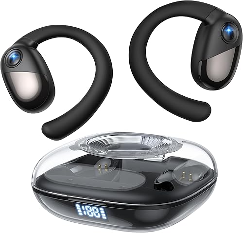 2025 Upgraded Open Ear Headphones, Wireless Earbuds with Smart Digital Display, Bluetooth Headphones, Premium Sound, IPX7 Waterproof, 30H Playtime, Ultra-Comfort, Lightweight, Wireless Headphones