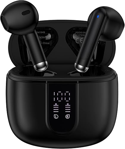 Wireless Headphones Bluetooth Earbuds for Samsung Galaxy S25 Ultra S24 A56 A16 A15 5G Double Noise Reduction IPX7 Waterproof in Ear Earphones Cancelling Earbuds with Mic LED Display for iPhone Android