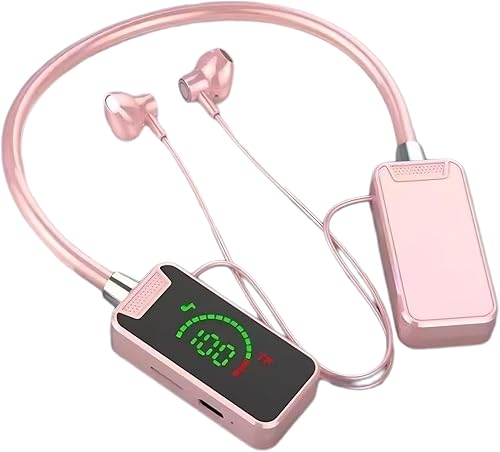 Foihletpath Sports Karaoke Bluetooth Earphones,with Wireless Sound Card and Microphone Bluetooth Neck-Mounted Earbuds for Sports Gym Daily Use (Pink)