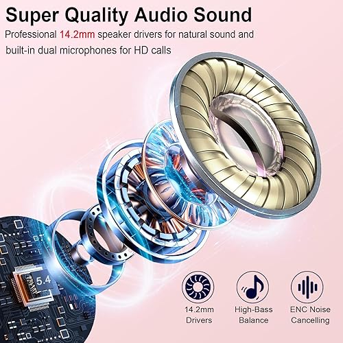 Wireless Earbuds, Bluetooth Headphones 5.4 with ENC Noise Cancelling Mics, 30H Bluetooth Ear Buds 3D Bass with LED Display Charging Case, IP7 Waterproof Wireless Earphones for Android, iOS, Rosegold