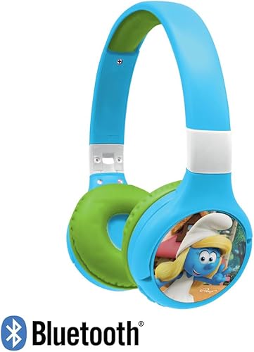 LEXiBOOK, The Smurfs, 2-in-1 Bluetooth & Wired Headphones with Microphone and Control Buttons, Foldable and Adjustable, Long-Lasting Rechargeable Battery, Blue/Green, HPBT010SF