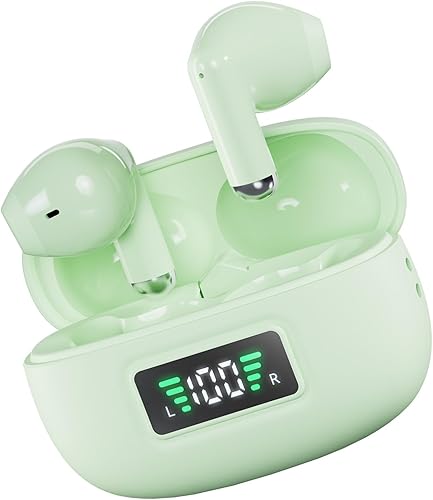 ACEMO Wireless Earbuds Bluetooth 5.4 Headphones with 30H Playtime, ENC Noise Cancelling Mic, Deep Bass, LED Display Charging Case, IPX5 Waterproof Ear Buds for iOS Android Laptop, Mint Green