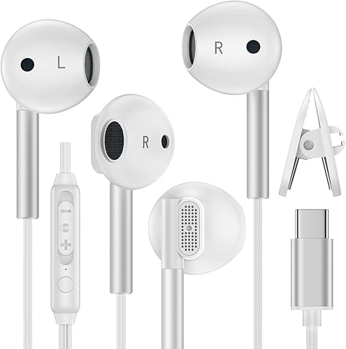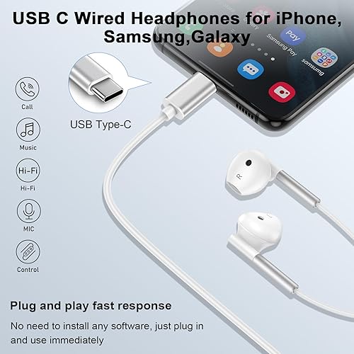 2 Pack USB C Headphones for iPhone 17/16/15 Wired Earbuds USB C Earphones with Microphone & Volume Control HiFi Stereo for Galaxy S25/S24/S23/S22/S21/S20 Ultra Note 20/10, for Pixel 9/8/7/6/5