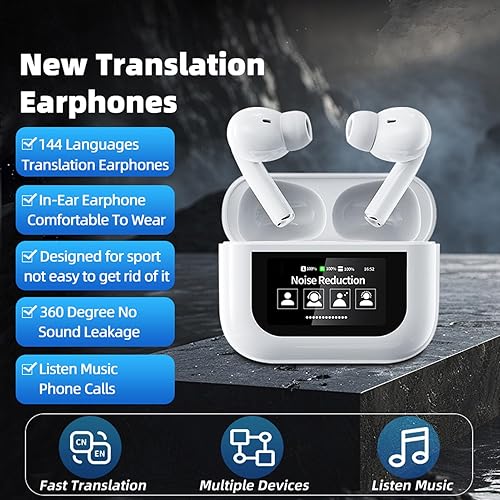 Language Translator Earbuds, 144 Languages Real Time Voice Interpreter with APP, Noise Cancellation Touch Screen Translation Headphones for Travel Business Learning