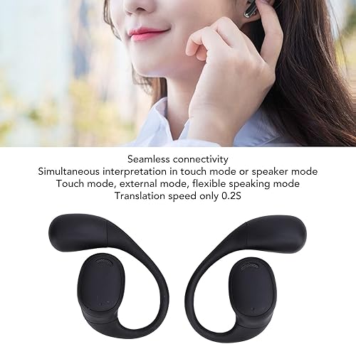 AI Translation Earbuds Real Time - All Language Translator Headphone Translating Earpiece Device - Wireless Bluetooth Ear Bud Offline Live Translate Earphone Interpreter Open Earpod (Black)