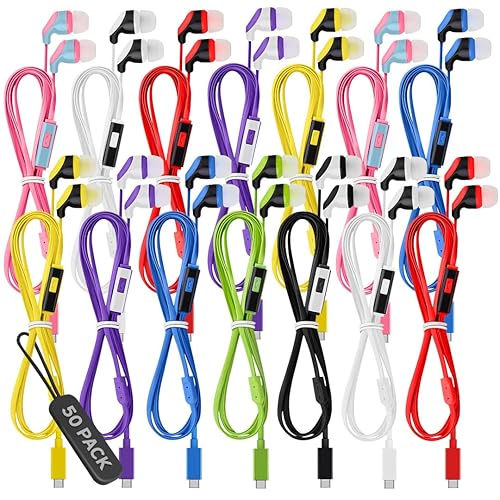50 Pack Bulk USB C Headphones with Mic, Type C Wired Earbuds Noise Cancelling Earphones Compatible with iPhone 16/15 Pro Max Plus, iPad Pro, Galaxy S23/S22/S21/Ultra, Pixel 8/7/6, Kindle Fire Max 11