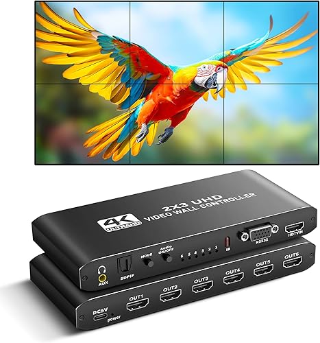 avedio links 4K HDMI Video Wall Controller 2x3, Video Wall Processor with Audio Out and RS232, 180° Rotation Only for 2x2 Mode, Supports 14 Splicing Modes Including 2x2, 2x3, 3x2, 1x6