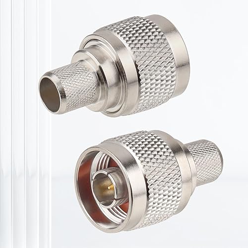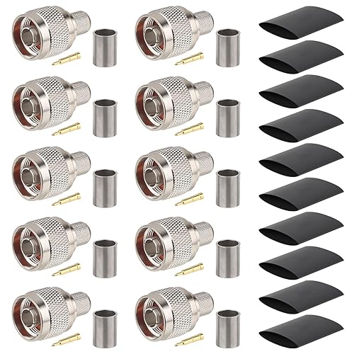 N Male Crimp Connector 50 ohm N Male Plug Crimp Coax Connector Adapter for LMR400 RG8 RG8U RG213 Cable (Pack of 10)