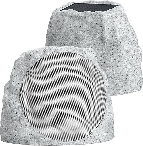 Rock Speaker Solar Powered & USB-C Rechargeable, Wireless Outdoor Speaker with Bluetooth 5.0, LED Disco Light, TWS Outdoor Speakers, Waterproof for All Seasons for Garden, Patio (1-Pk, Grey)