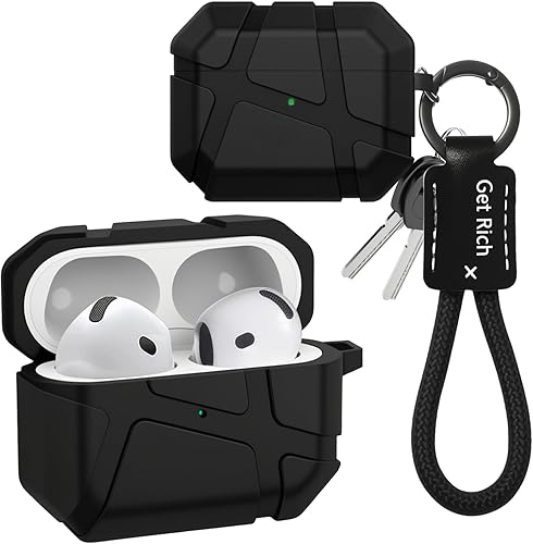 for AirPods Pro 3 Armor Case, Meteorite Texture Rugged TPU Double-Layer Shockproof Hard Shell Protective Cover with Keychain Lanyard for Apple AirPods Pro 3rd Generation YS Green
