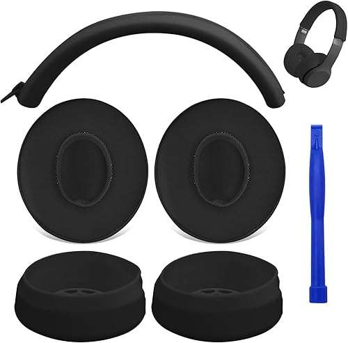 Adhiper Ear Pads + Silicone Earpad Covers & Headband Cover for Beats Solo 3 & Solo 2 Wireless Headphones, Solo3 Earpad Replacement Accessories Protein Leather - Black