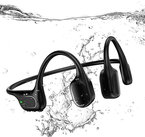 Bone Conduction Swimming Headphones Underwater, Waterproof Earbuds, Bluetooth Open Ear Swim Headphones with Built-in 32G Memory Card Sport Earbuds for Swimming