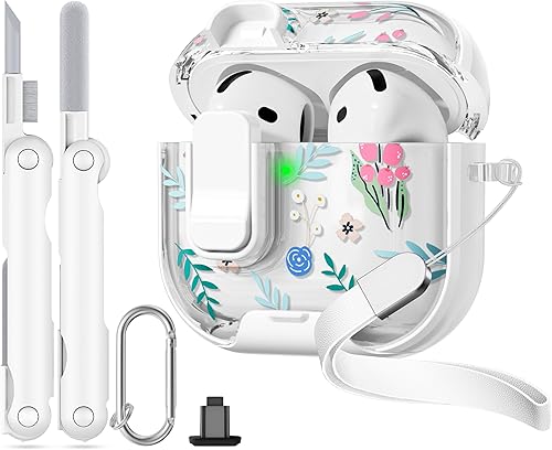 with Safety Lock for Apple AirPods 2 Case,Clear Floral Cute AirPod Pro 2nd Generation Case with Phone Stand & Cleaning Kit for Women Girly-Pink Flower