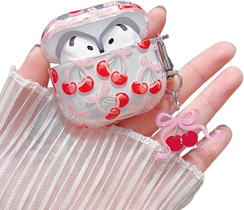 MINSCOSE for AirPods Pro 3rd Generation Case (2025) with Cleaner Kit,Cute Trendy Cherry Leaves Aesthetic Design with Keychain,Soft TPU Protective Shockproof Case for Women Girls for Airpod Pro 3-Red